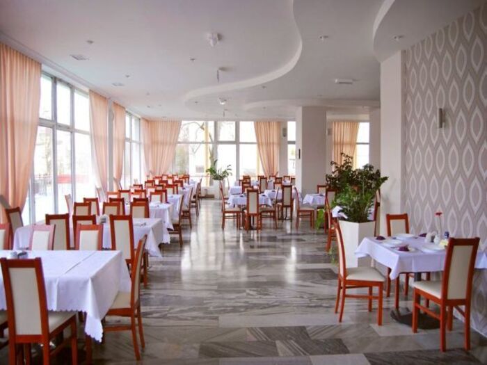 Ausstattung: traditionsreiches Kurhotel mit sehr gutem und freundlichem Service, Speiseraum, Café Bar, Kosmetiksalon, Safe (gegen Gebühr), Lift, Bademantelservice (gegen Gebühr), Behandlungszentrum mit sehr guter Kurqualität und Möglichkeiten für medizinische Massagen und Bäder (z. B. mit echter Kolberger Sole), Bewegungs-, Elektro-, Wärme-, lokale Kälte-, Lichttherapie und Inhalationen.