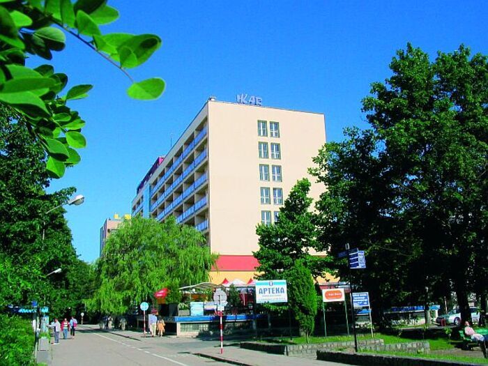 Ausstattung: Speisesaal, schönes Cafe mit Tanzbar, weitläufiges Foyer mit Wintergarten und einem weiteren Cafe mit Kostenfreiem WLAN, Dachterrasse mit herrlichem Blick auf die Ostsee, Lift, Friseur- und Kosmetiksalon, kleine Shops in der Passage, Safe (gegen Gebühr), EC-Automat, Bademantelservice (gegen Gebühr), modernes Behandlungszentrum mit Möglichkeiten für medizinische Massagen (klassische Teilkörpermassage, Vibrationsmassage, Unterwassermassage), medizinische Bäder (Perlbad, Solebad, Wirbelbad, Kohlensäurebad, Moorbad), Bewegungstherapie (Gruppenheilgymnastik im Wasser, Ergometer, Nordic Walking), Elektrotherapie (Diadynamik, Ultraschall, Interferenzstrom, Iontophorese auch mit Vitaminen, Magnetotherapie), Wärmetherapie (Fangopackung, Moorpackung, Parafangopackung), lokale Kältetherapie, Lichttherapie (Lasertherapie, Sollux), Hydrotherapie (Schottische Dusche), Jod-Brom-Inhalation.