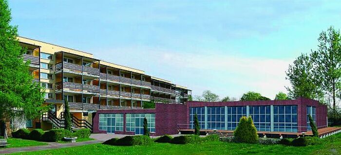 Ausstattung: Café mit Bar, Speiseraum, Lift, Friseursalon, Kosmetik, Safe an der Rezeption (gegen Gebühr), weitläufiger Außenbereich mit Sitzgruppen, Liegewiese, Grillplatz, modernes Behandlungszentrum mit Möglichkeiten für medizinische Massagen (klassische Teilkörpermassage, manuelle Lymphdrainage, Vibrationsmassage), medizinische Bäder (Perlbad, Wirbelbad, Sauerstoffbad), Bewegungstherapie (Gruppenheilgymnastik im Trockenen und im Wasser, Ergometer), Elektrotherapie (Diadynamik, Ultraschall, Interferenzstrom, Iontophorese, Magnetotherapie), Wärmetherapie (Moorpackung), lokale Kältetherapie, Lichttherapie (Lasertherapie, Sollux, Bio-Lampe) und Inhalationen (Jod-Brom-Inhalation, Sauerstofftherapie).