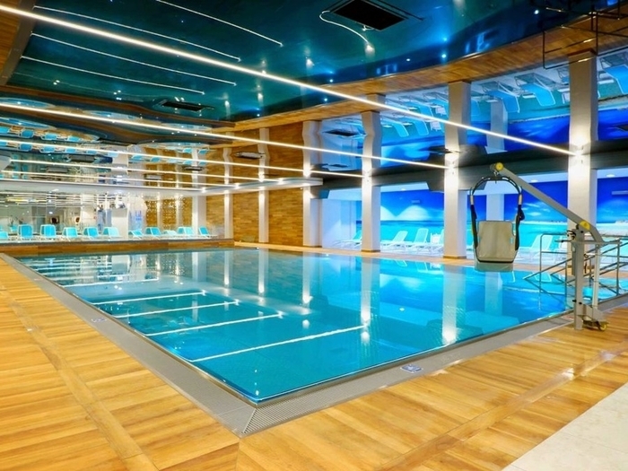 Ausstattung: modernes und großzügiges Hotel. À-la-carte-Restaurant, Speiseraum, Café in der 7. Etage, Lobby-Bar, Konferenzsaal, Lifte, WLAN, moderne Spa- & Beautyabteilung, Bademantelservice, hochmodernes Behandlungszentrum mit Möglichkeiten für medizinische Massagen (klassische Teilkörpermassage, Vibrationsmassage, Unterwassermassage), medizinische Bäder (Perlbad), Bewegungstherapie (Wassergymnastik), Elektrotherapie (Magnetotherapie), Wärmetherapie (Fangopackung, Moorpackung), lokale Kältetherapie, Lichttherapie (Lasertherapie, Sollux) und Inhalationen.